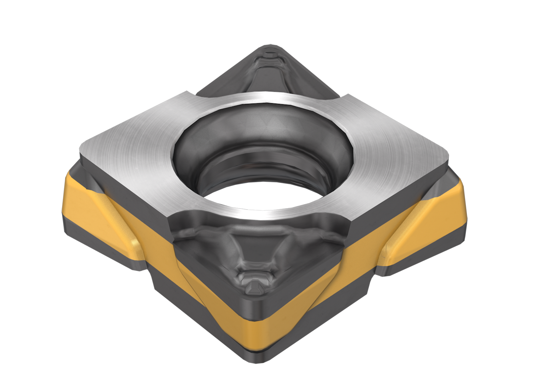 The Logiq-4-Turn can be an excellent alternative to the popular CNMG inserts, which are typically negative (FIG. 1). Unlike CNMG, the positive geometry of Logiq-4-Turn helps to reduce cutting forces and vibrations, providing better stability and surface finish in challenging machining operations. Logiq-6-Turn